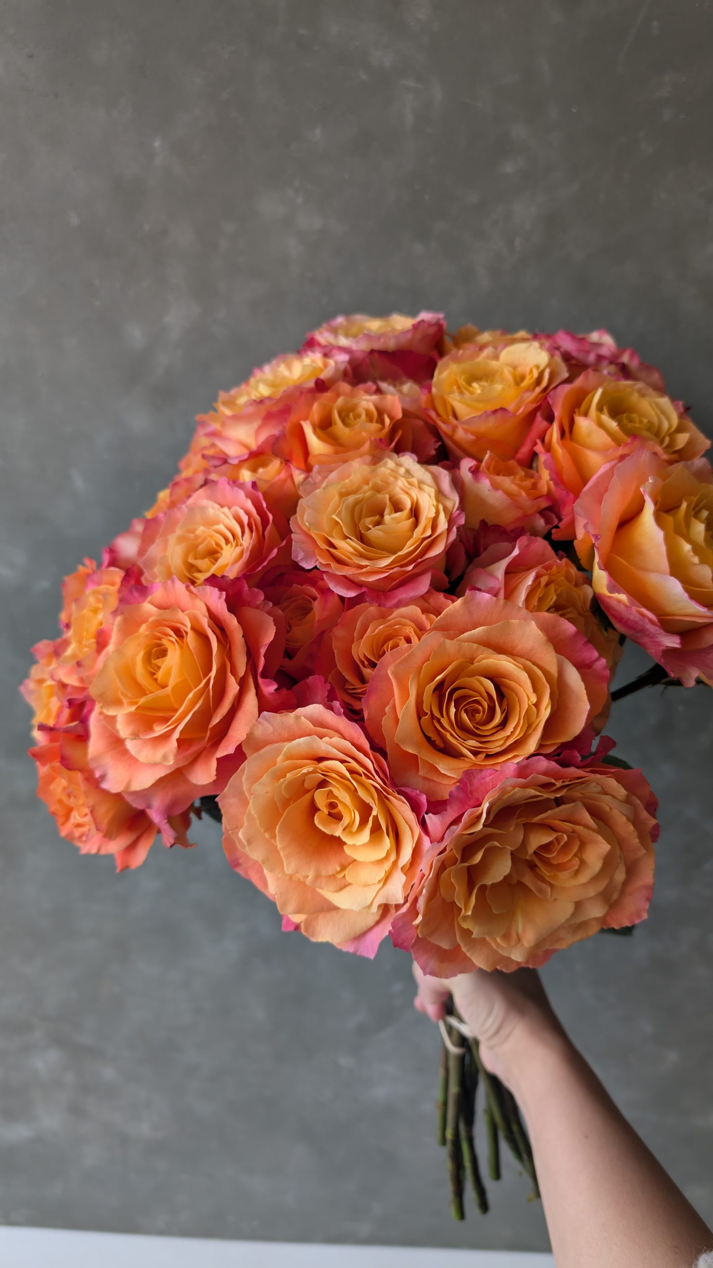 The Adeline Rose is a breathtaking bi-color rose that radiates energy and sophistication. With bold orange petals softly kissed by pink undertones, this variety brings a dynamic visual contrast that’s both fiery and romantic. Grown in the rich Ecuadorian highlands, Adeline Rose boasts large, elegant blooms with intricate petal formation and vivid tones.