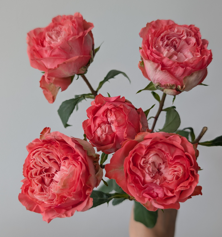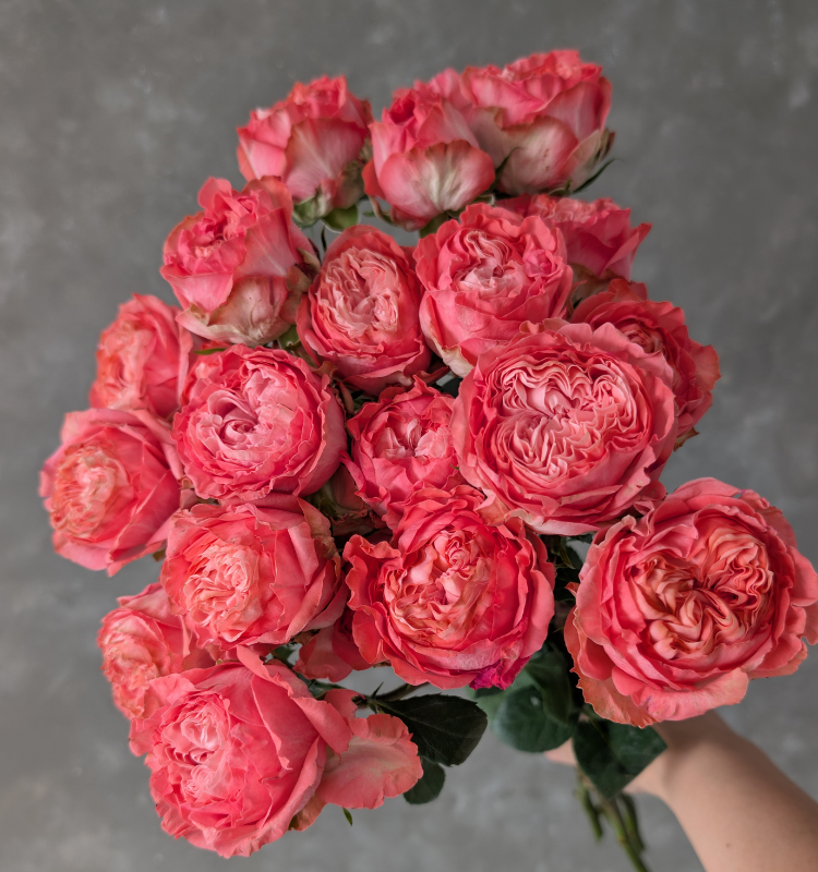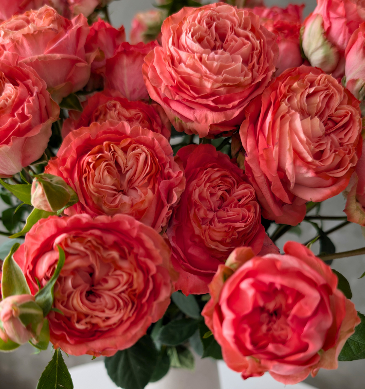 Meet First Date spray, a charming coral pink Ecuadorian spray rose known for its lush garden-style bloom and warm romantic tone. Each stem produces multiple delicate flowers that open into beautifully layered petals, creating a soft yet vibrant visual impact.