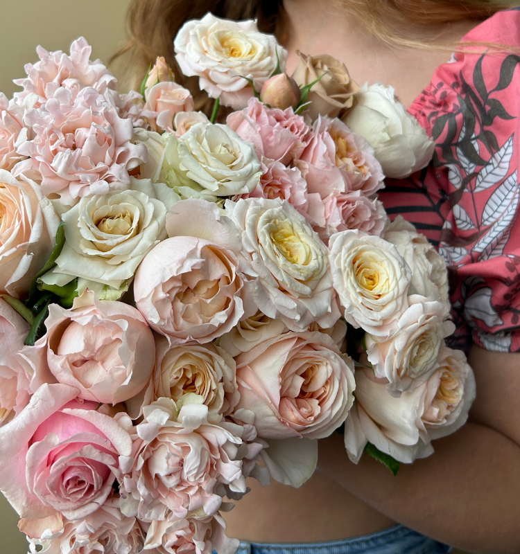 Meet Princess Pinku, a romantic blush pink Ecuadorian spray rose with a charming garden-style appearance. This variety features multiple petite blooms per stem, each opening into softly layered petals with subtle green undertones that add depth and natural elegance.